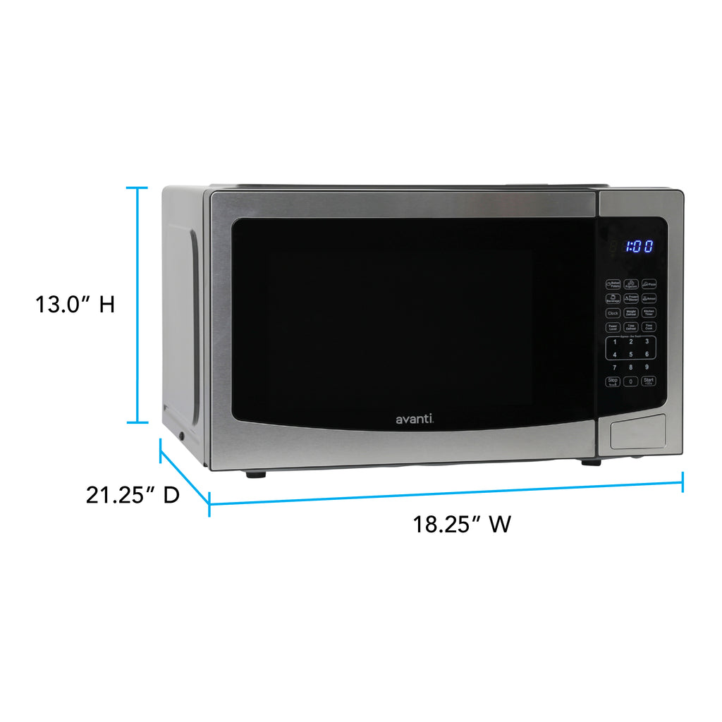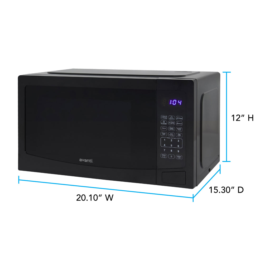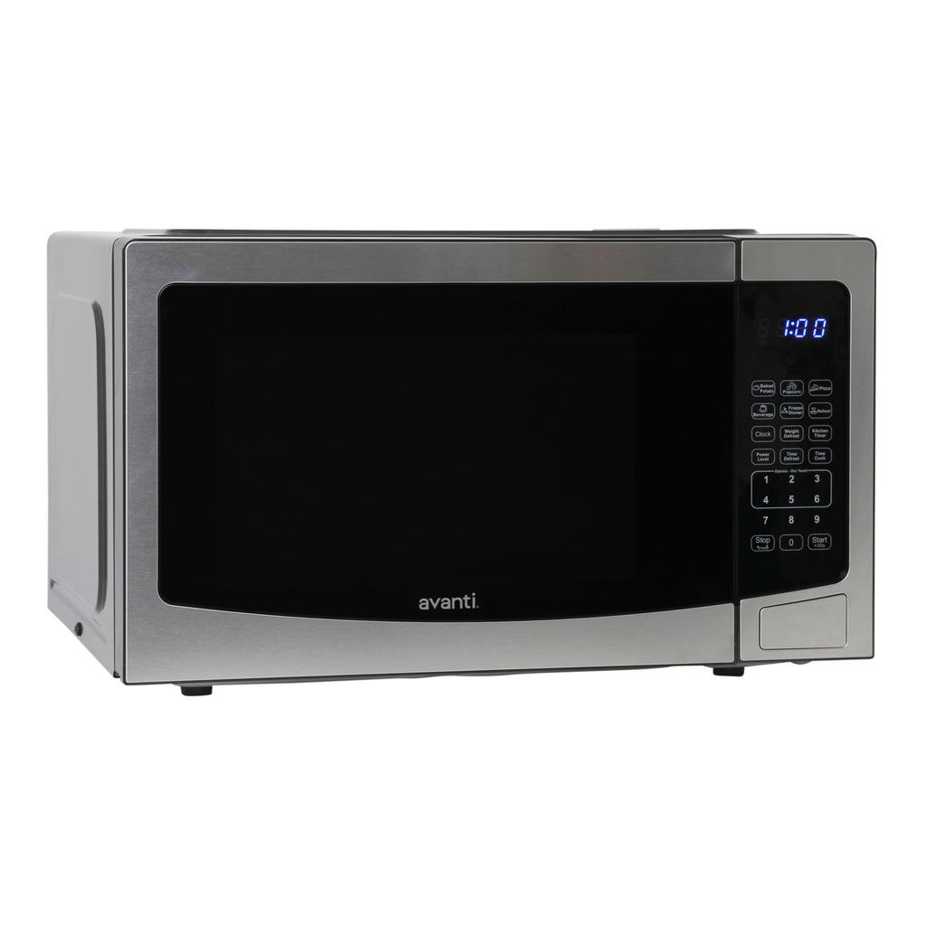 Save counter space with this compact microwave oven from Avanti. This 1.1 cubic foot microwave is perfect for the dorm, man cave, office, studio apartment, RV, tiny home, rental room, condo and more. This small microwave features 1000 watts of cooking power, an easy-to-use electronic control panel and 6 pre-set cooking settings (baked potato, popcorn, pizza, beverage, frozen dinner and reheat). The turntable with a glass tray ensures your food is heated evenly. This freestanding microwave fits perfectly on the countertop. Covered by the Avanti One-Year Limited Warranty.