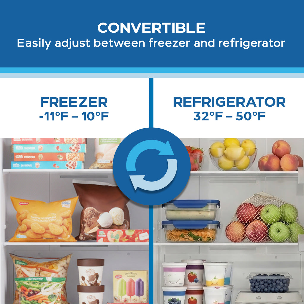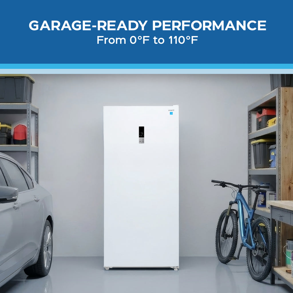 - "Garage Ready" in Freezer Mode (0°F–110°F): Works great in basements and garages when set to freezer. For best performance as a refrigerator, keep in ambient temperatures between 50°F–109°F