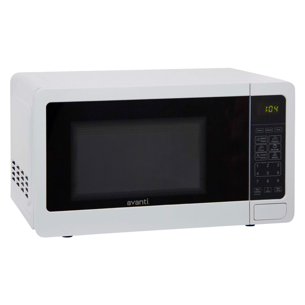 Save counter space with this 0.7 cubic foot microwave oven from Avanti. Its compact size makes it the perfect countertop microwave oven for the dorm, man cave, office, studio apartment, RV, tiny home, rental room, condo, vacation home or anywhere you need to cook food fast. This small microwave features 700 watts of cooking power and 10 power levels for heating and defrosting. Easily cook your favorites with the touch of a button with six one-touch, pre-set cooking modes for potatoes, popcorn, pizza and more. A turntable with a glass tray helps ensure your food cooks evenly. Maximize your counter space with this compact microwave oven. Covered by the Avanti One-Year Limited Warranty.