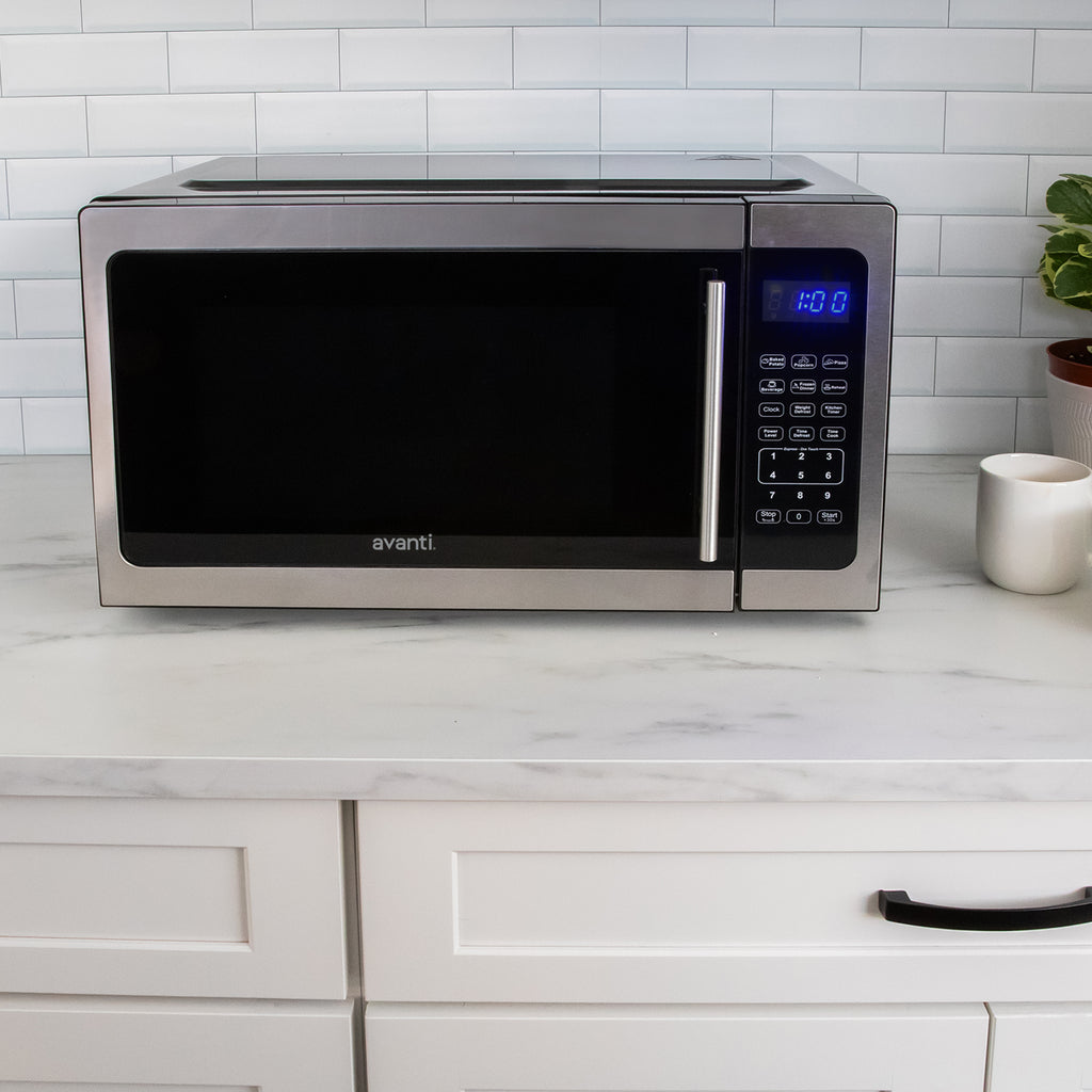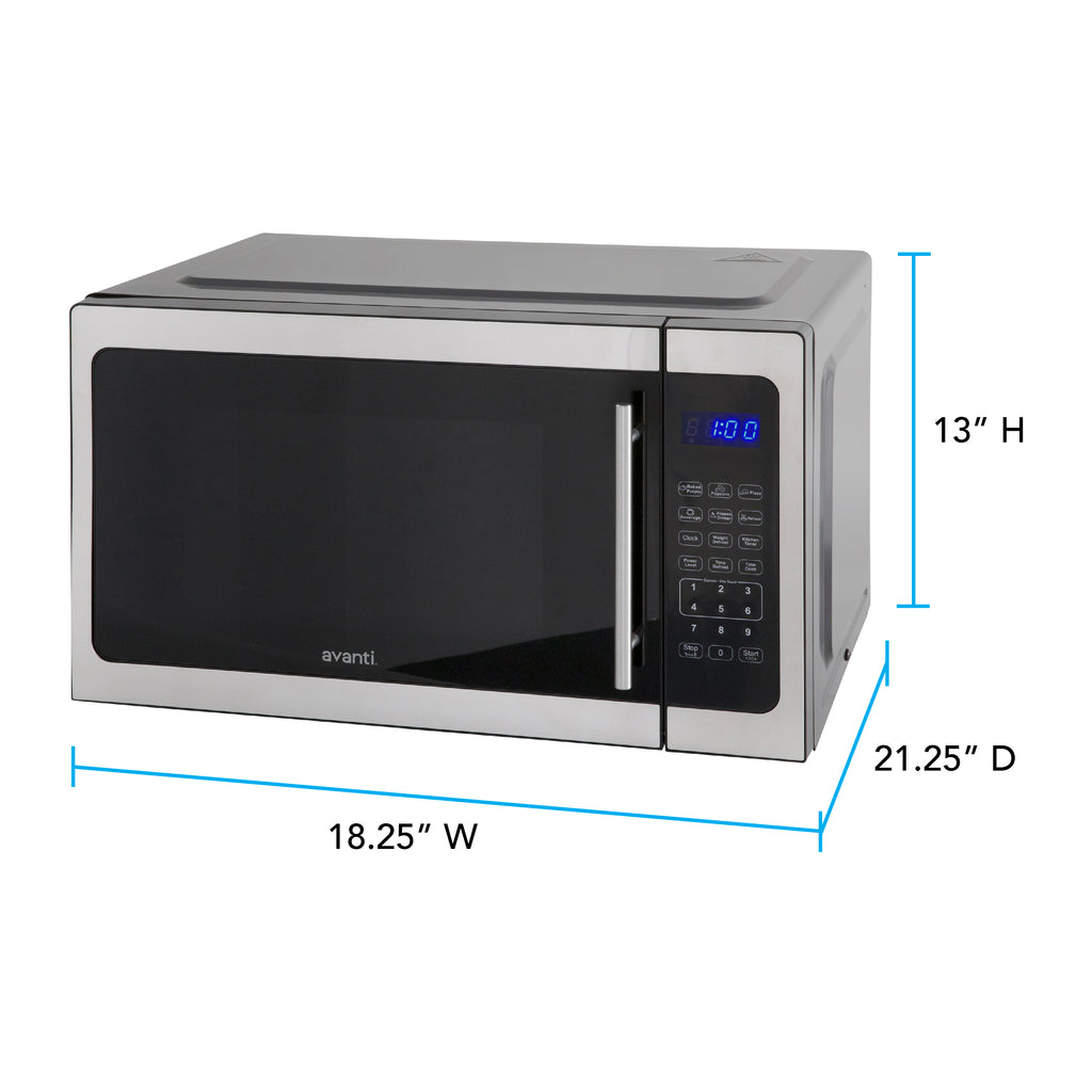 Upgrade your kitchen, dorm room, office, or small living space with the Avanti 1.5 Cubic Foot Large Capacity Stainless Steel Accented Microwave Oven. Designed for maximum convenience, this high-powered 1000-watt microwave lets you heat, cook, and reheat your favorite meals with ease. Whether you're living in a tiny home, RV, studio apartment, vacation rental, condo, dorm or office, this compact yet spacious microwave is the perfect solution for fast, efficient cooking. Featuring an intuitive electronic control panel, this countertop microwave includes 6 pre-programmed cooking functions for effortless meal preparation. Cook everything from popcorn and pizza to baked potatoes, soups and frozen dinners with a simple touch of a button. The beverage reheating function makes it easy to warm up coffee, tea, or hot cocoa in seconds. The removable glass turntable ensures even heating, preventing cold spots while maximizing efficiency. With its sleek and modern design, this microwave complements any kitchen, breakroom, or dorm setup. Its compact footprint fits perfectly on countertops without taking up excessive space, making it ideal for small apartments, office kitchens, and rental properties. Backed by the Avanti One-Year Limited Warranty, you can trust in its durability and performance. Experience the convenience of a powerful, space-saving microwave that delivers fast and reliable cooking results every time. Elevate your kitchen today with the Avanti 1.5 Cu. Ft. Microwave Oven!
